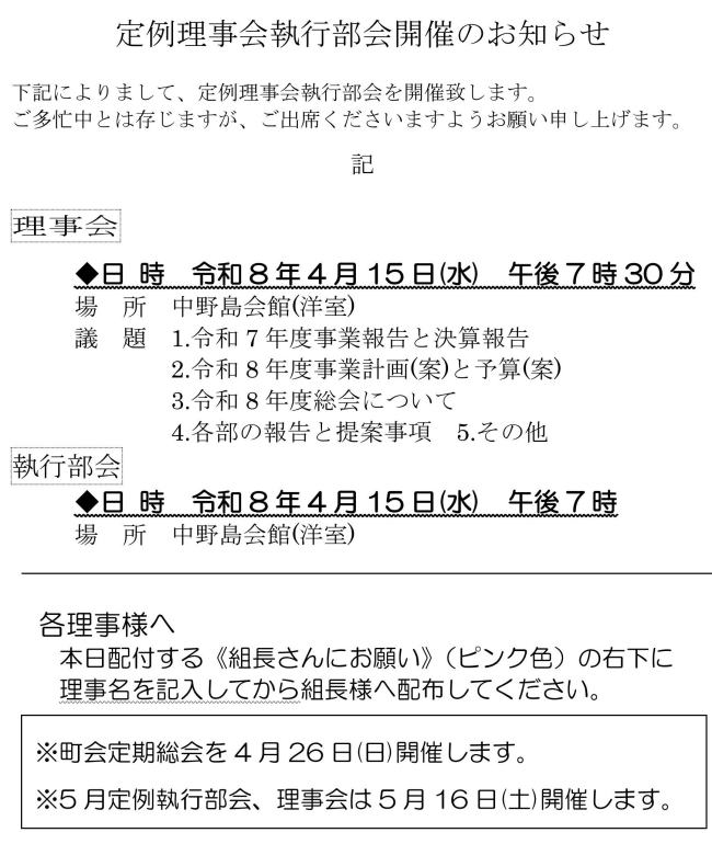 町会役員便り(中野島町会役員の皆様にお知らせします)